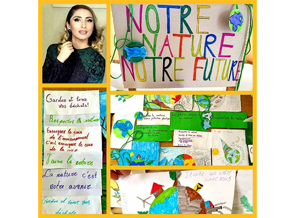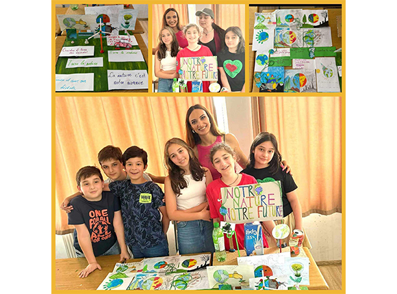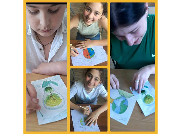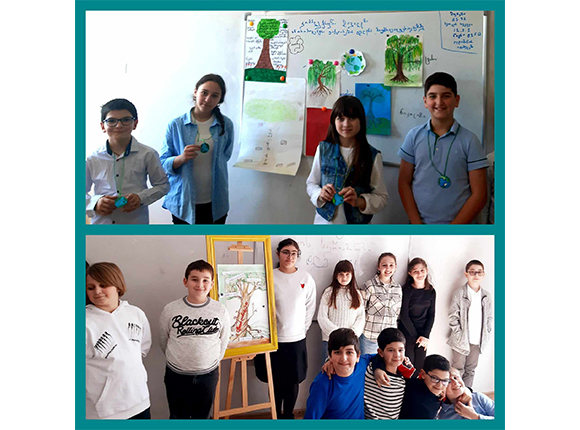 ხელოვნების გაკვეთილზე დაამზადეს მაკეტები და ნახატები, სადაც ასახეს ადამიანის დადებითი და უარყოფითი ქმედებების გავლენა გარემოზე. მოსწავლეებმა ფრანგულად გააფორმეს სლოგანები.