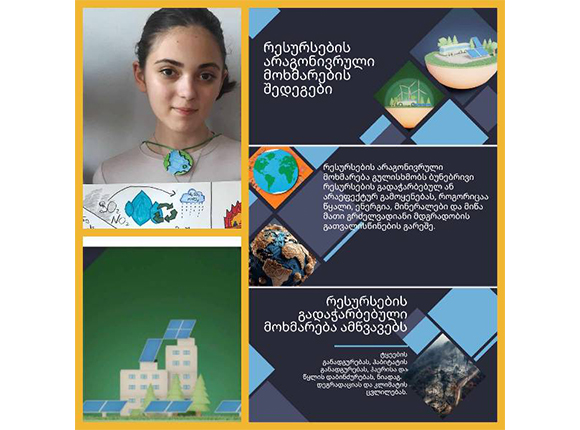 მე-9 კლასის მოსწავლეებმა იმსჯელეს, რა ზეგავლენა შეიძლება მოახდინოს ანთროპოგენურმა ფაქტორებმა გარემოზე. ჯგუფური და ინდივიდუალური მუშაობით წარმოადგიმეს პრეზენტაციები, პლაკატები სლოგანით ,, გადაამუშავე ნარჩენები და და არა თავად ბუნება’’. ისაუბრეს მჟავა წვიმებზე, სათბურ ეფექტზე და რა გავლენა შეიძლება ჰქონდეს ინდუცირებულ ორგანიზმებს ბიომრავალფეროვნებაზე. ყურადღება გაამახვილეს რესურსების არაგონივრულ მოხმარების შედეგებზე და ალტერნატიული გზების მოძიების მნიშვნელობაზე.