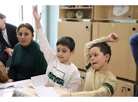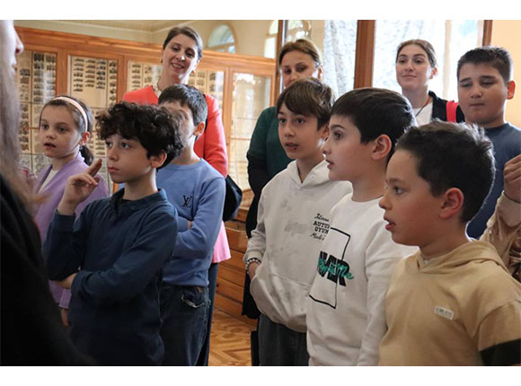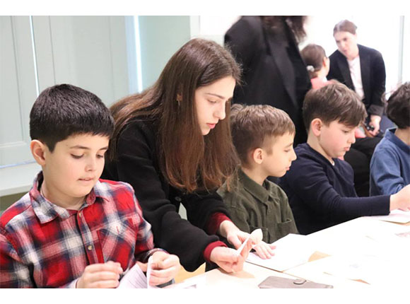გაკვეთილის სახალისო და შემეცნებითი ნაწილი იყო თუთის აბრეშუმხვევიას სასიცოცხლო ციკლის ვიდეო მასალის ჩვენება და ბუკლეტების დარიგება. მოსწავლეებმა თავად დაასურათეს სტიკერებით. მუზეუმისგან მიღებულმა საჩუქრებმა კი დღე კიდევ უფრო სასიამოვნო გახადა.