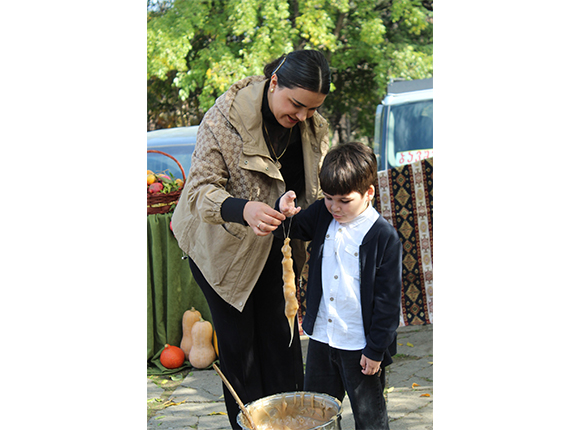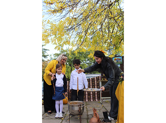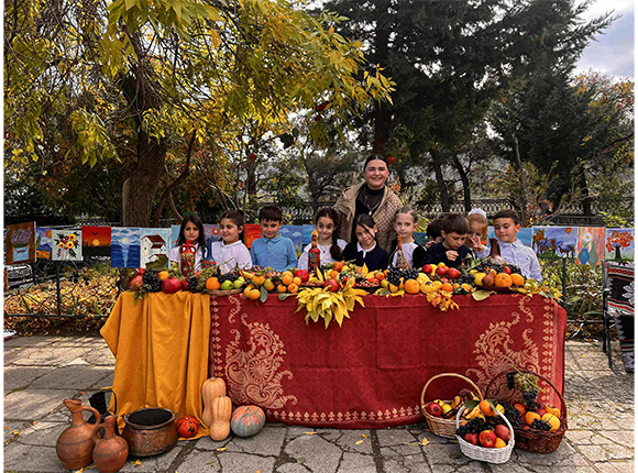 ბავშლებმა საკუთარი ხელით ამოავლეს ჩურჩხელები, მოაწყვეს ნამდვილი შემოდგომის სურნელით სავსე სუფრა და გადაიღეს ულამაზესი ფოტოები.