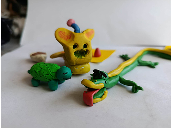 თემა „ქანდაკება და რელიეფი“ მხოლოდ თეორიული მასალა არ აღმოჩნდა — ბავშვებმა პლასტელინის დახმარებით საკუთარი ფანტაზიები რეალობად აქციეს.